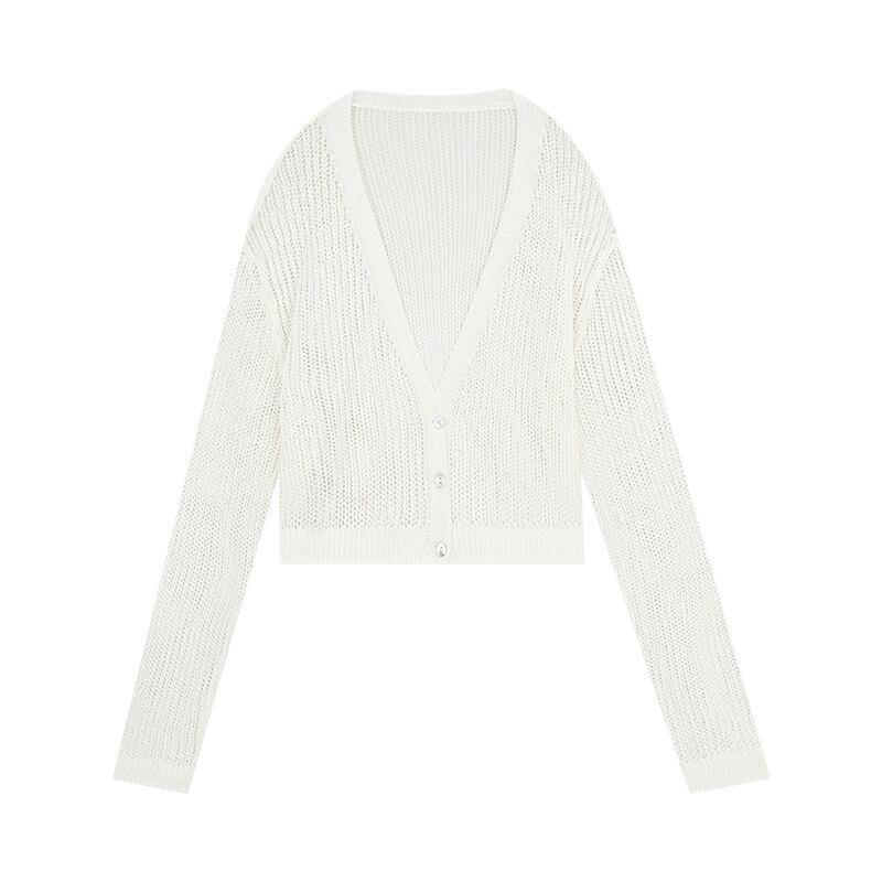 程よいメッシュの編み地が魅力のニットカーディガン。