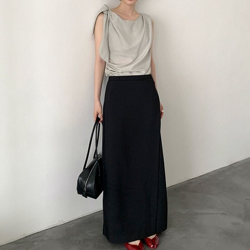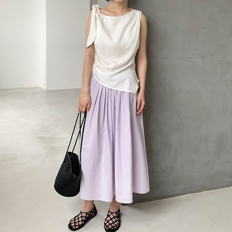 シンプルながらも女性らしく洗練されたデザインでどんなボトムスとも好相性な1着です。
