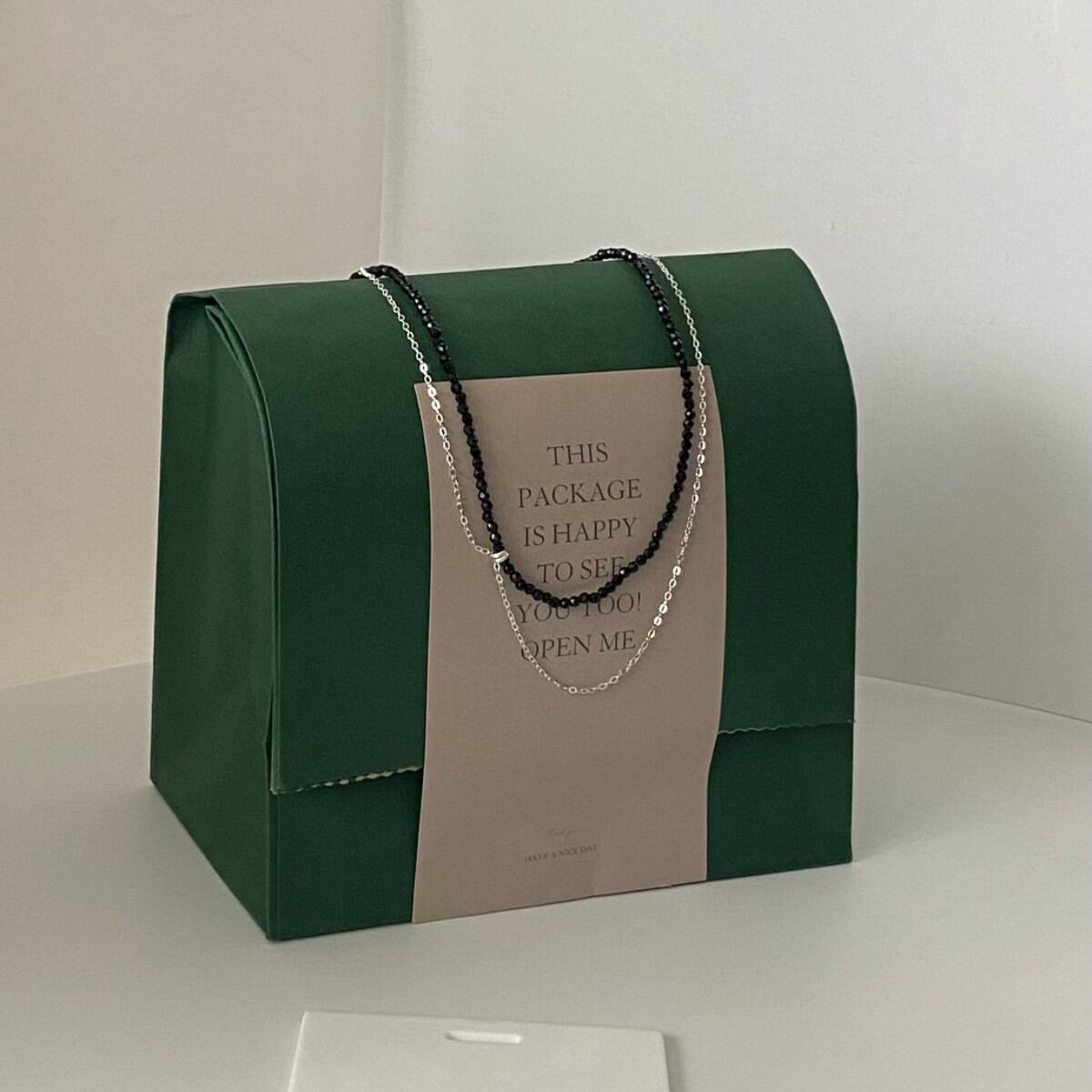 ブラックスピネル(黒尖晶石)とシルバーチェーンの2連ネックレス。