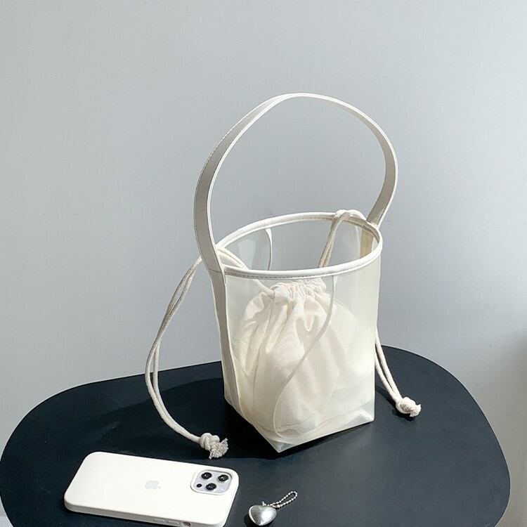 巾着付きで中身が透けすぎず、ちょっとしたお出かけにぴったりです。