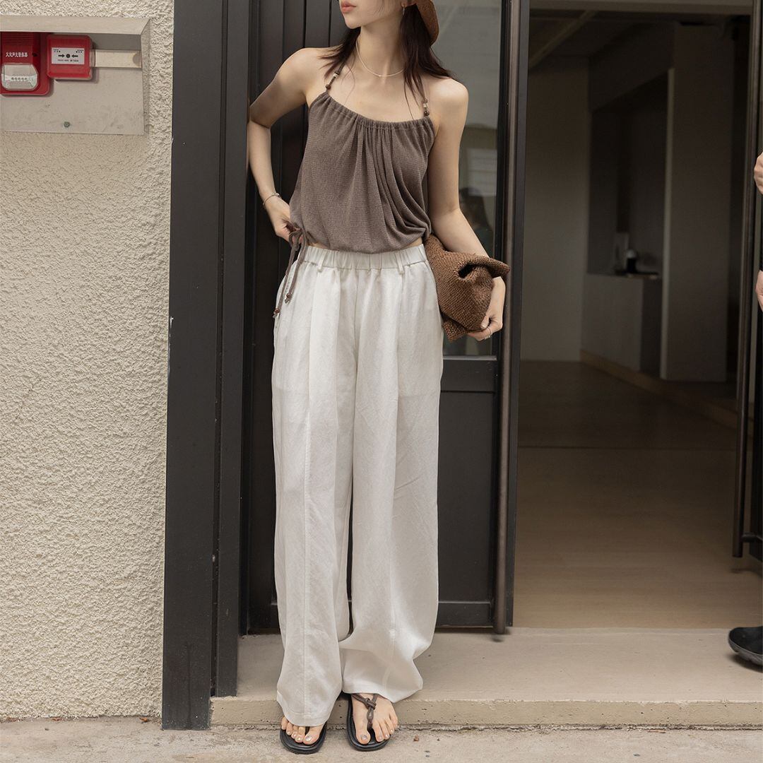 涼やかな素材感とルーズシルエットが魅力のワイドパンツ。