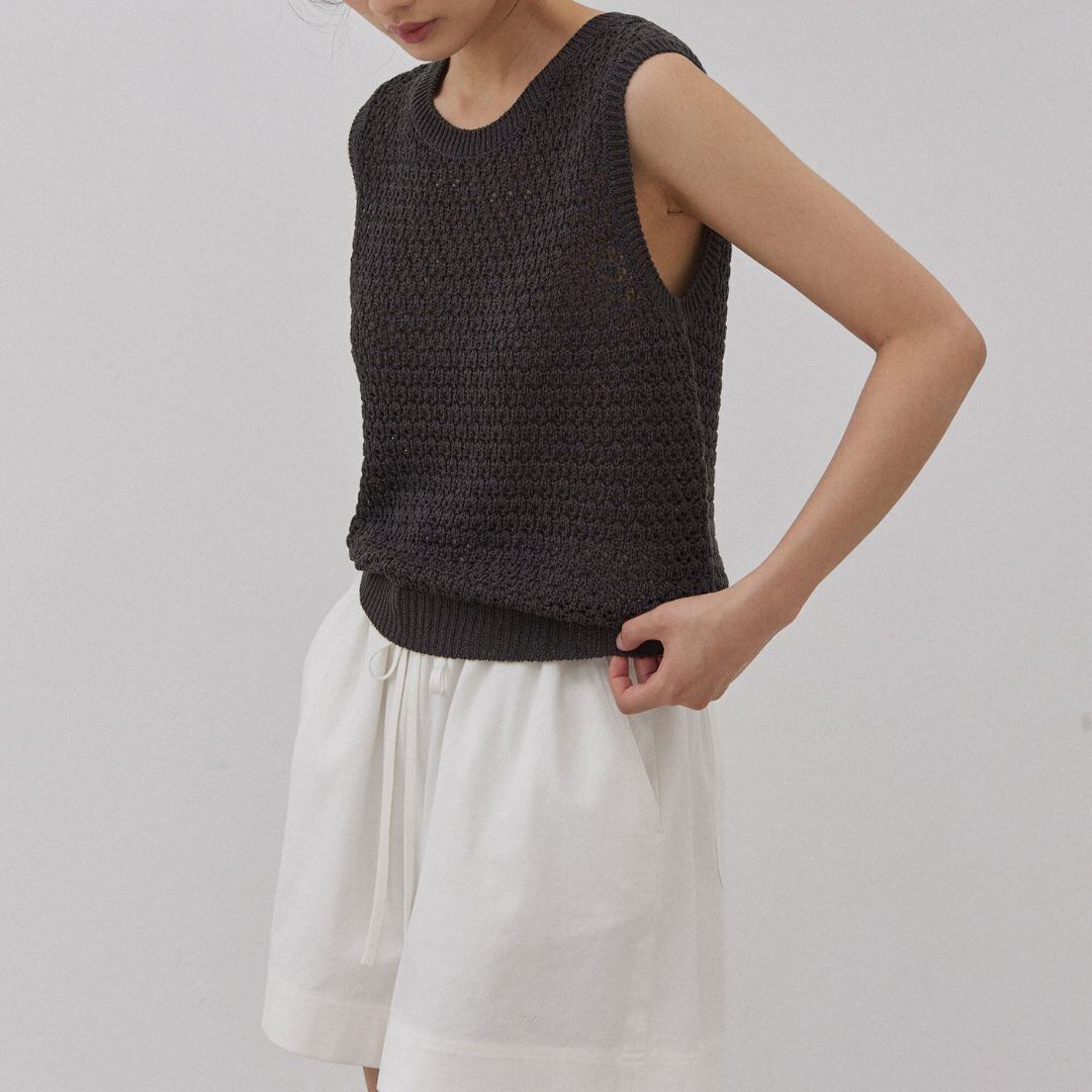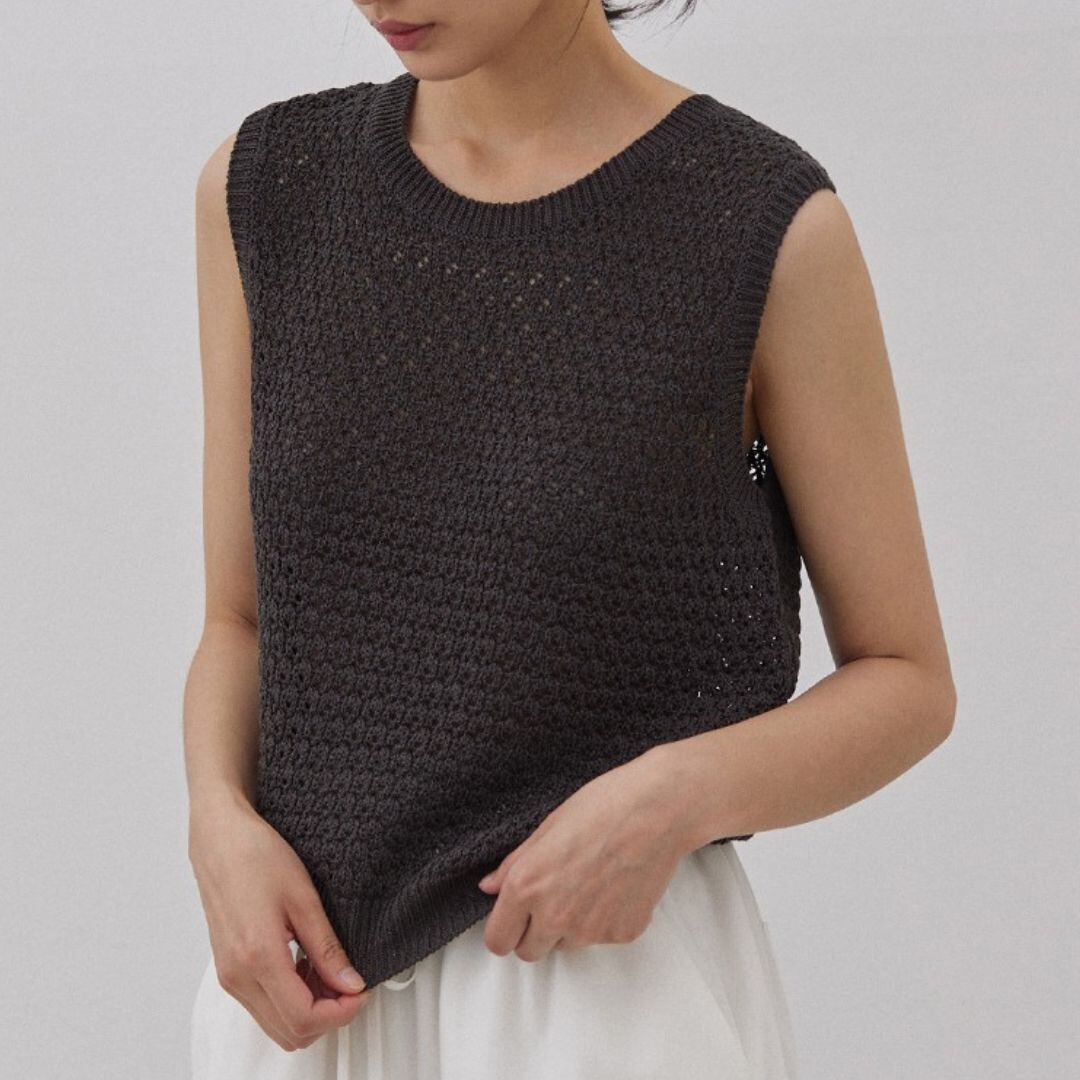 メッシュ編みが涼しげなノースリーブニット。