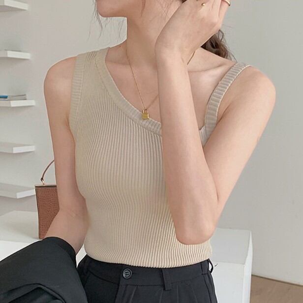 アシンメトリーなデザインが目を惹くタンクトップ。
