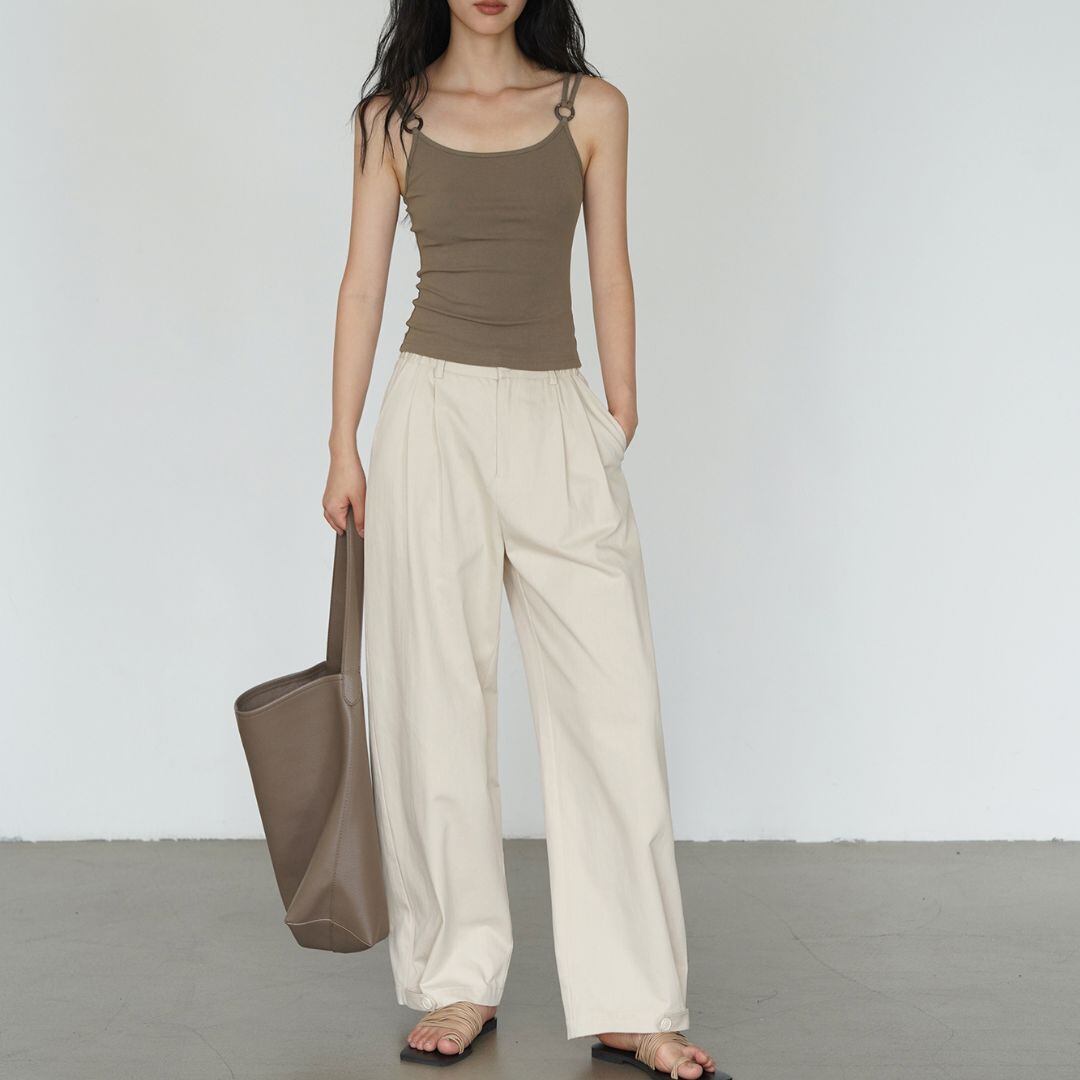 シンプルながらも洗練されたデザインのストレートパンツ。