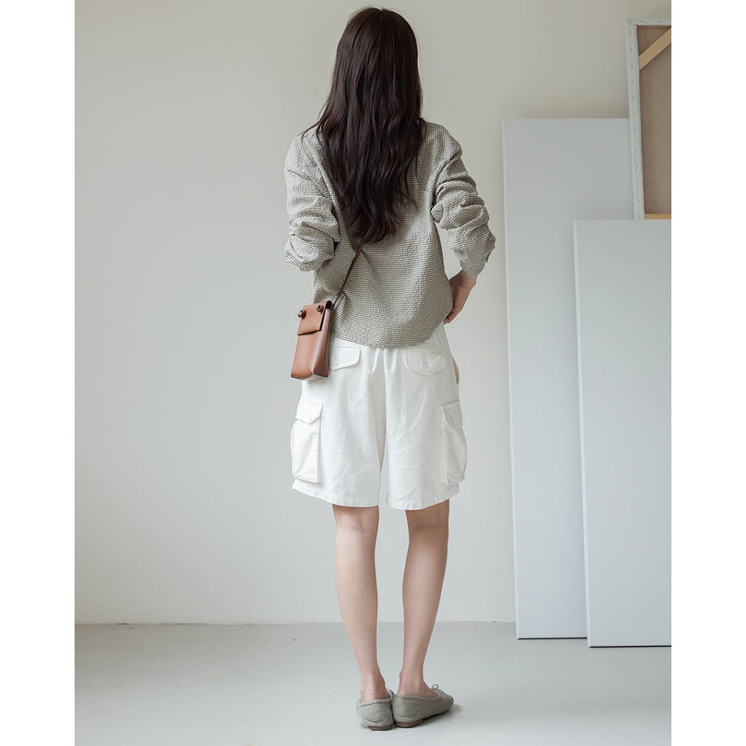 胸元の刺繡がさりげないアクセントのギンガムチェックシャツ。
