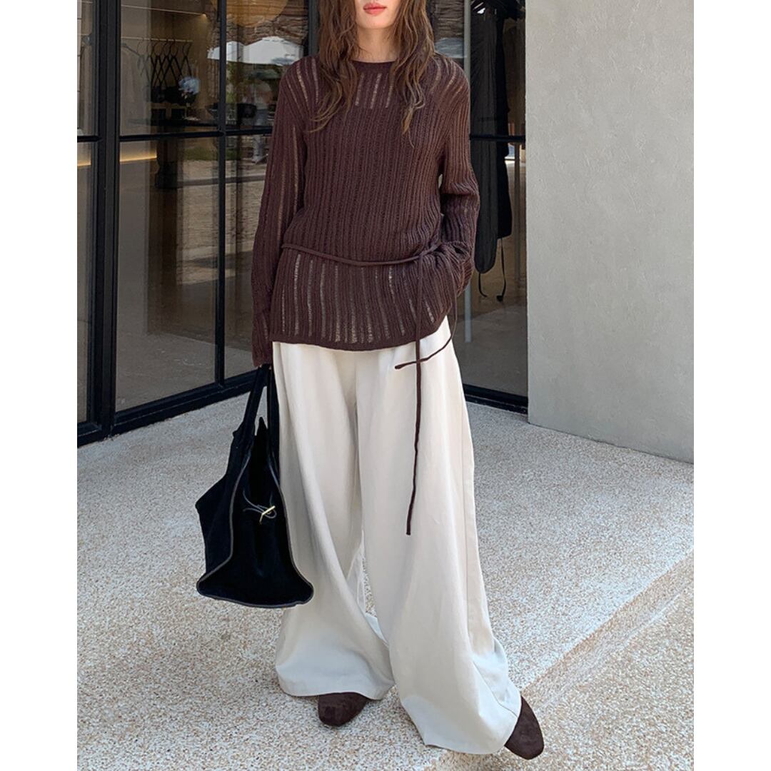 透け感のあるニットは、女性らしさを引き立て抜け感のあるスタイルを演出します。
